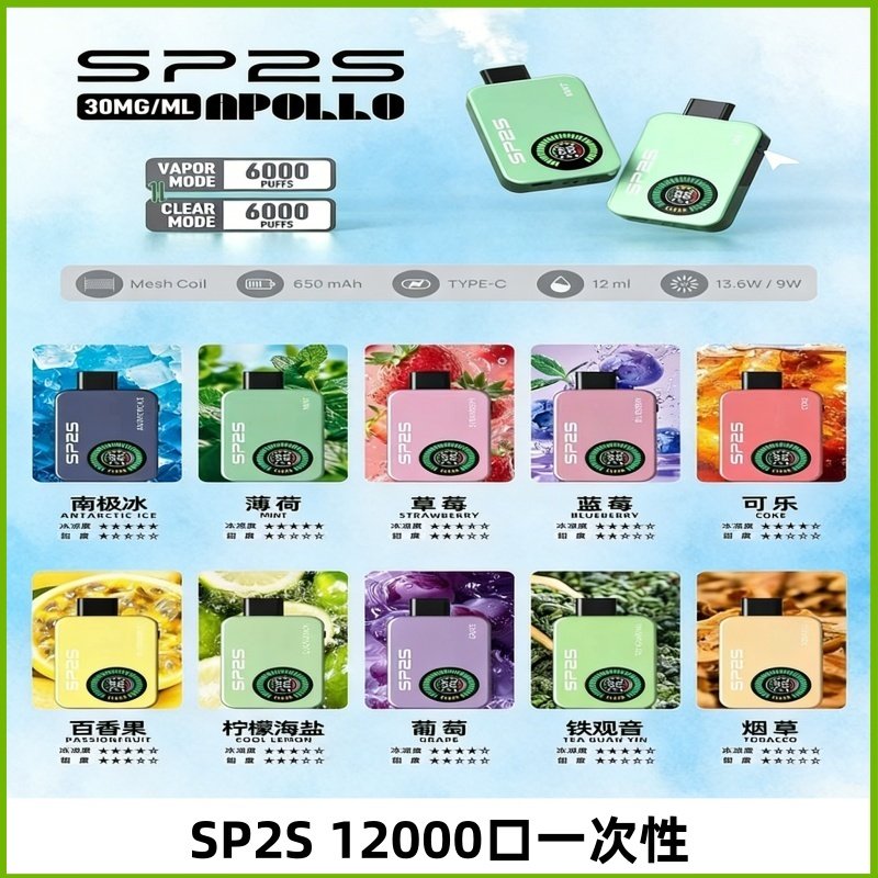 SP2S Apollo 12000口拋棄式電子煙:革新您的隨身霧化體驗